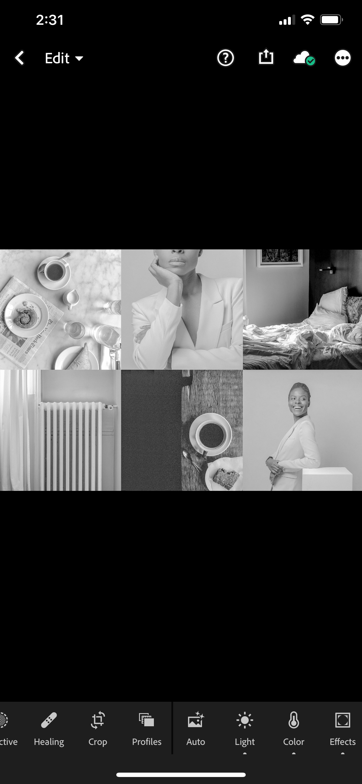 Now, let’s apply these settings to another image. Tap the back arrow and choose an image from your image library or add an image by clicking on the Add Photo icon at the bottom and selecting an image from your Camera Roll.