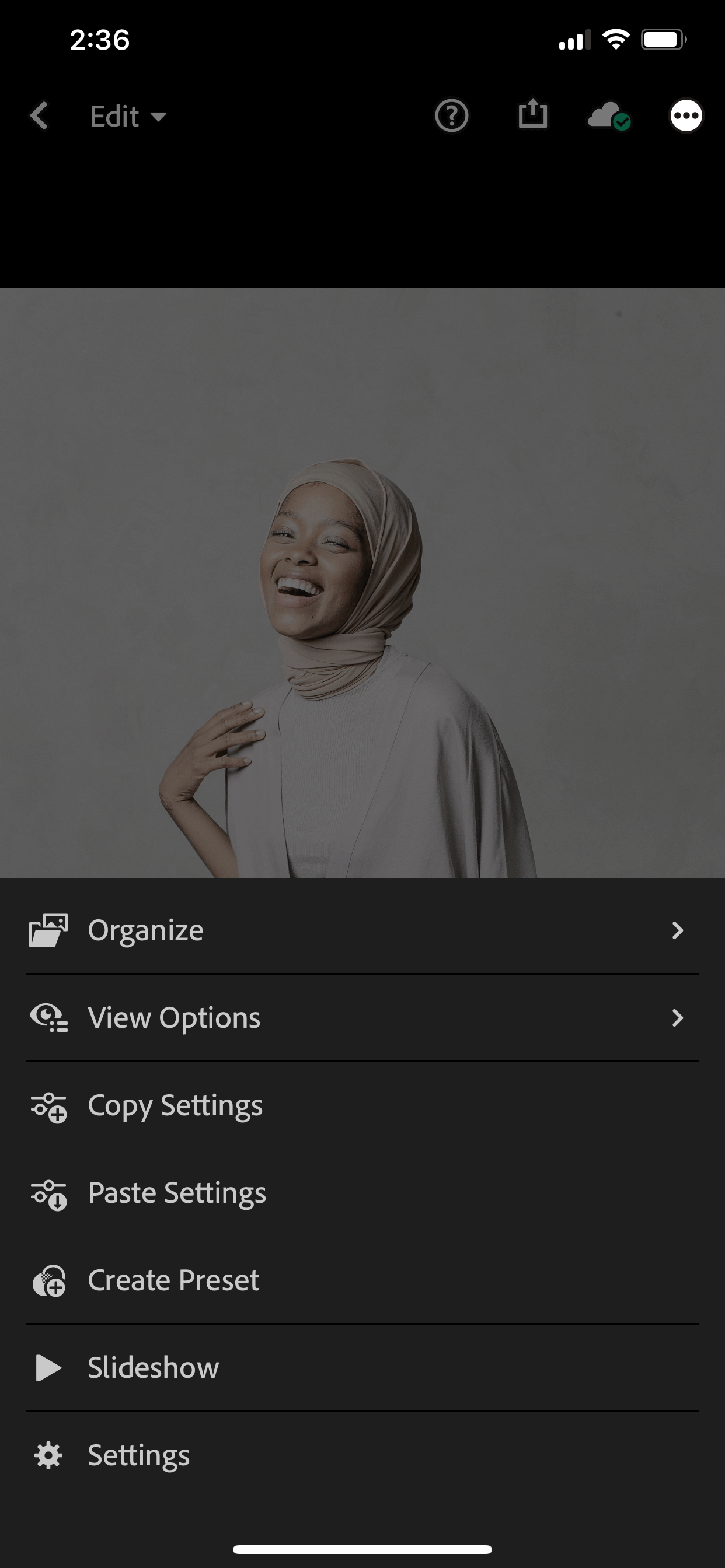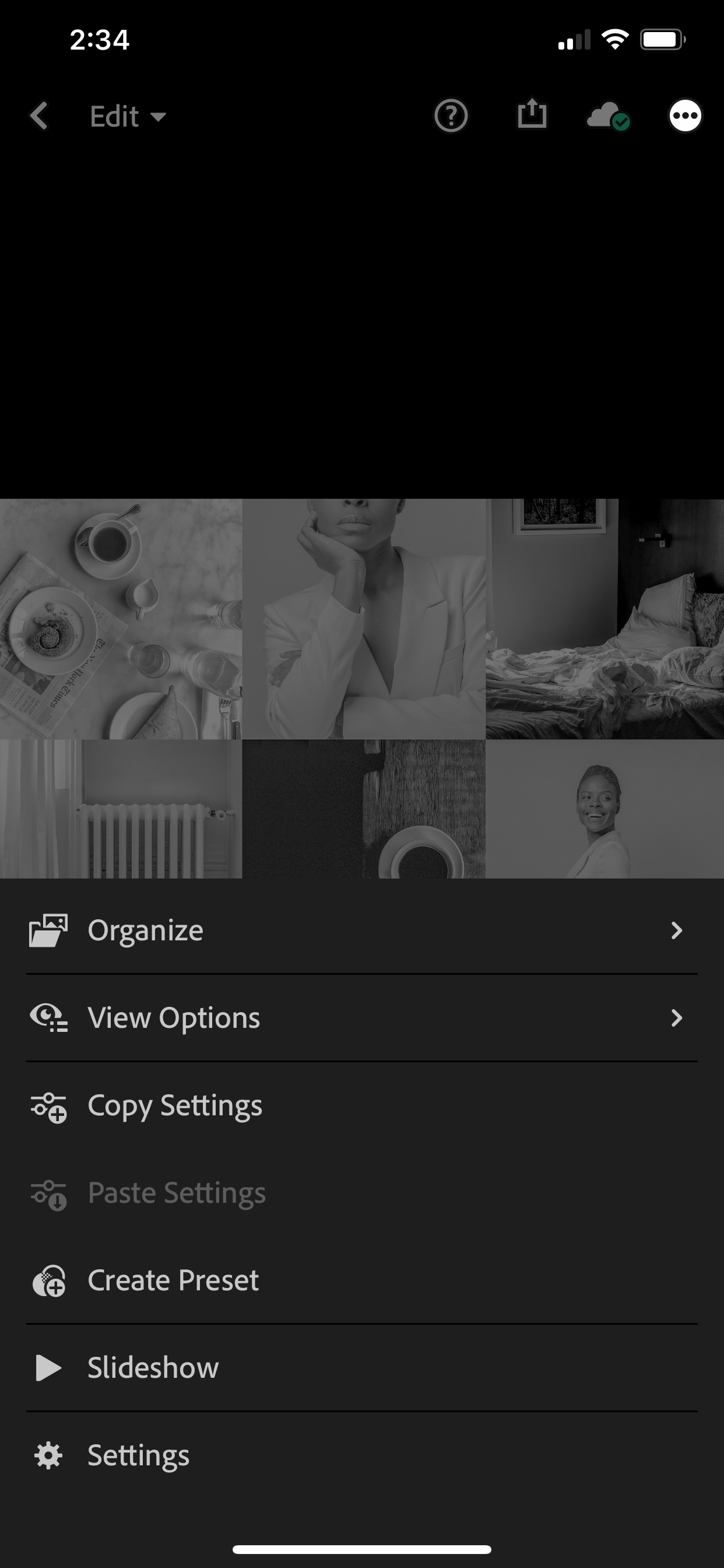 Select the image and click on the three dots on the upper right hand corner. Select Paste Settings. You’ve applied the preset to your image.