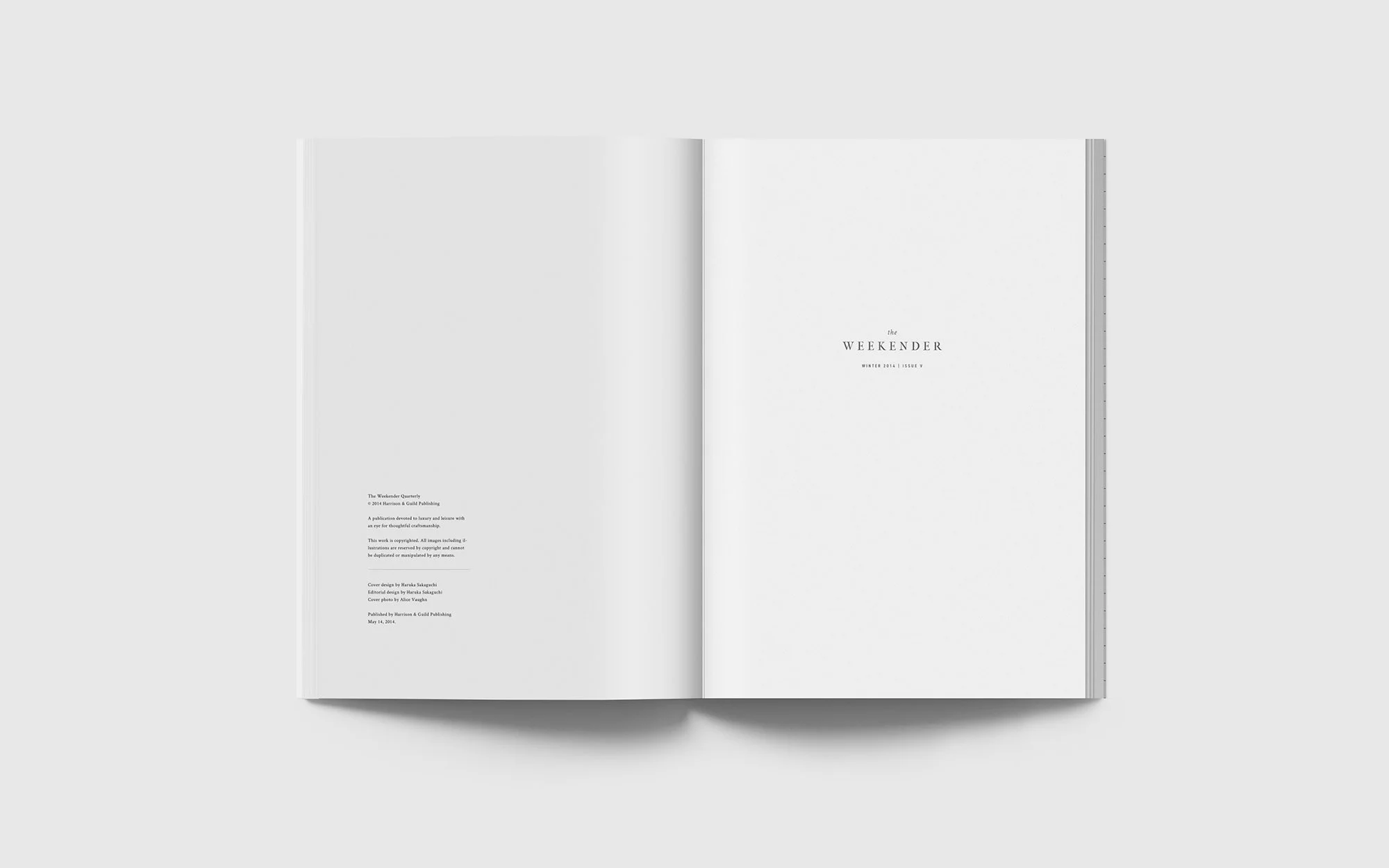 The Weekender is a quarterly lifestyle magazine based out of Vancouver, BC. Together, we crafted a brand identity and editorial concept for the inaugural issue, which was released winter of 2014.